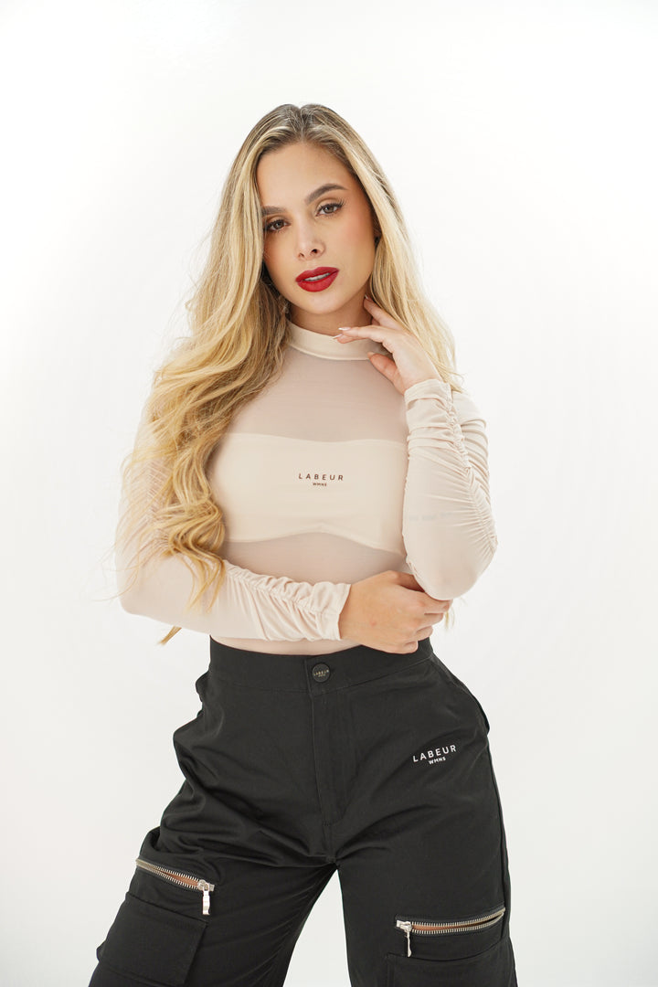 El equilibrio perfecto entre sensualidad y elegancia. El Body Avignon combina malla elástica ligera con un top interno en licra para dar soporte y cubrir estratégicamente. Con cuello tortuga y mangas fruncidas, es una declaración de estilo.
